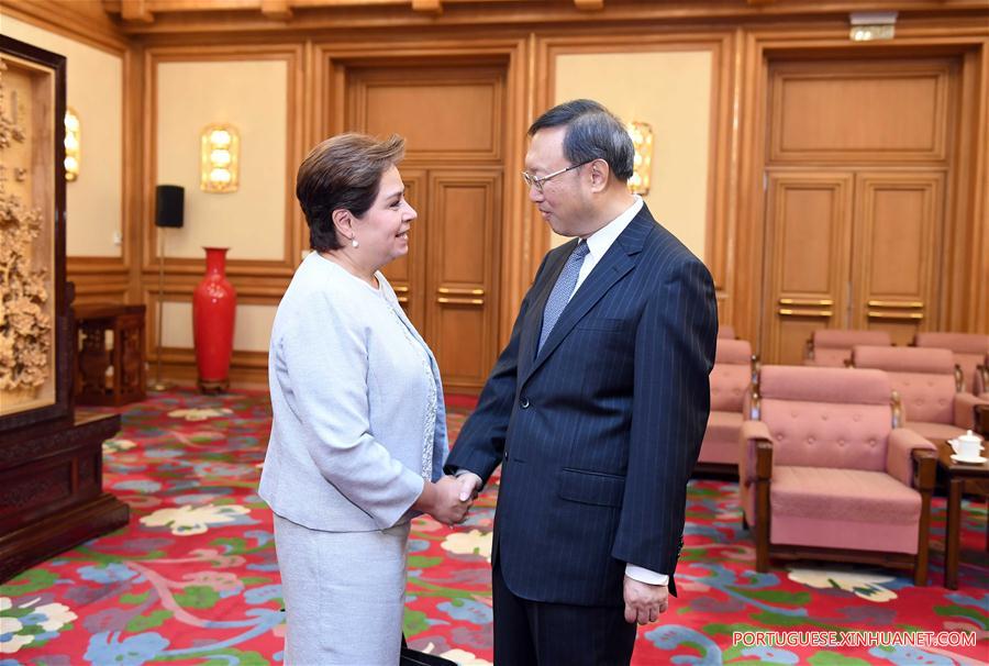 O conselheiro de Estado chinês Yang Jiechi fez a declara??o em uma reuni?o com a secretária executiva da Conven??o Quadro das Na??es Unidas sobre Mudan?a Climática, Patricia Espinosa.