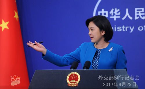 A porta-voz do Ministério das Rela??es Exteriores chinês, Hua Chunying, fez as declara??es em resposta a uma pergunta relativa às manifesta??es de alguns manifestantes da RDC que exigem que o THAAD seja parado, antes de uma reuni?o entre chefes da defesa nacional da RDC e dos Estados Unidos em 30 de agosto.
