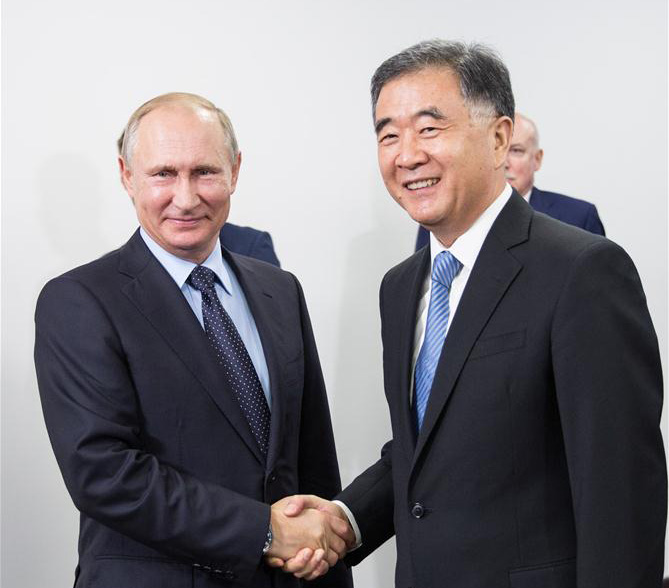 O presidente russo, Vladimir Putin, recebeu o vice-premiê chinês, Wang Yang, em Vladivostok, na quinta-feira.