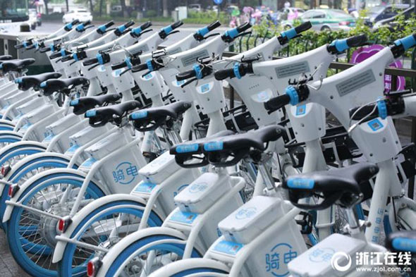Atualmente, 2.590 bicicletas elétricas compartilhadas est?o em servi?o em Hangzhou.