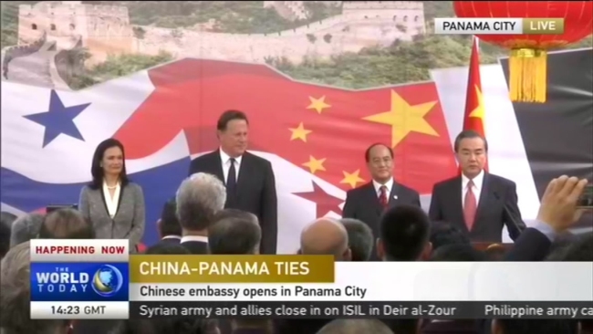O chanceler chinês, Wang Yi, atualmente em visita ao Panamá, compareceu à inaugura??o da embaixada da República Popular da China no país caribenho. A abertura da embaixada coincide precisamente com a visita de dois dias de Wang ao país americano.