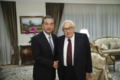 Nova York, 20 set (Xinhua) -- O ministro das Rela??es Exteriores da China, Wang Yi, reuniu-se em Nova York na segunda-feira com o ex-secretário de Estado dos Estados Unidos Henry Kissinger, com quem conversou sobre a rela??o entre os dois países.