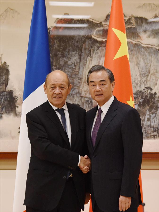 Nova York, 21 set (Xinhua) -- O ministro chinês das Rela??es Exteriores, Wang Yi, reuniu-se ter?a-feira com seu homólogo francês, Jean-Yves Le Drian, e os dois lados prometeram aumentar a coopera??o nos assuntos mundiais de destaque e mudan?a climática, entre outros.