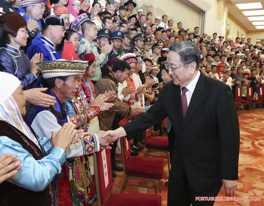 Beijing, 28 set (Xinhua) -- O mais alto assessor político da China, Yu Zhengsheng, reuniu-se na quarta-feira com uma delega??o de grupos de minorias étnicas em Beijing pedindo que contribuam para impulsionar a unidade e a prosperidade nacionais.