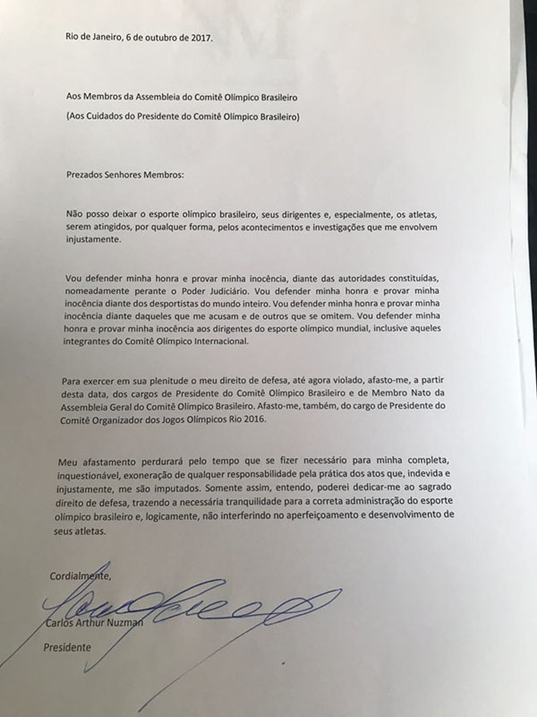 Em carta, Nuzman pede afastamento do COB (Foto: Reprodu??o/Globo.com)