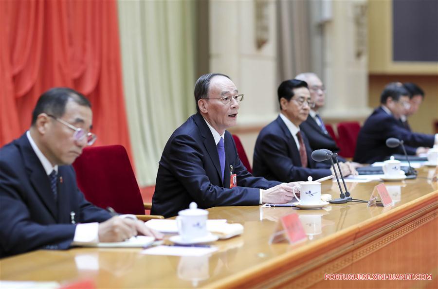 Discursou na reuni?o Wang Qishan, membro do Comitê Permanente do Bir? Político do Comitê Central do PCCh e secretário da CCID.
