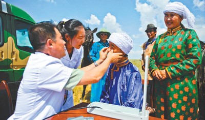 Uma equipe médica examina pastores na Mongólia Interior, norte da China. (Foto: Wu Yong/Diário do Povo)