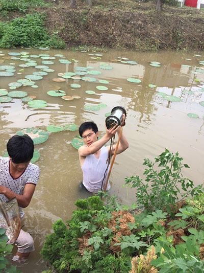 Uma máquina de bombeamento foi arrastada pelas chuvas forte. Shi Shengyu, secretário do comitê do partido de Weidianji, uma aldeia pobre no distrito de Yucheng, na província de Henan, ajuda um alde?o a retirar a máquina do rio.