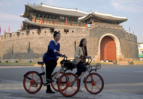 As bicicletas da companhia est?o agora nas ruas de Suwon, na província de Gyeonggi, a décima quarta cidade estrangeira a receber a marca chinesa, disse a Mobike em um comunicado.