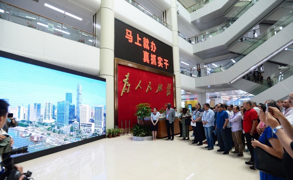 Fórum de partidos políticos, think tanks e organiza??es sociais dos BRICS, organizado pelo Departamento Internacional do PCCh em Fuzhou. A imagem mostra que os conviados est?o na visita pelo centro de servi?o dos cidad?os de Fuzhou.