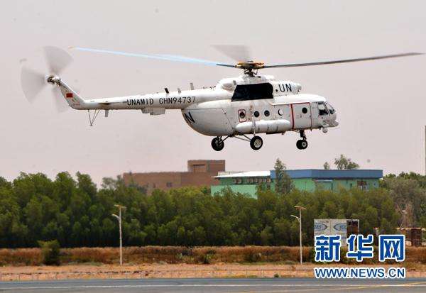 Dois helicópteros da unidade de manuten??o de paz da China realizaram seus primeiros voos em Darfur, no oeste do Sud?o, no dia 4 de novembro, segundo relatos do Diário do Exército de Liberta??o.