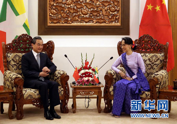 Nas conversa??es, o ministro chinês destacou que a China e o Mianmar, ligados por montanhas e rios, s?o vizinhos unidos por uma amizade "paukphaw" ("fraterna" na língua de Mianmar) e que a China apoia firmemente Suu Kyi no governo do país, em concordancia com a vontade do seu povo.