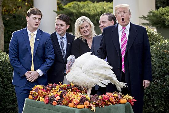 Washington, 21 nov (Xinhua) -- O presidente dos Estados Unidos, Donald Trump, perdoou, na quarta-feira, Drumstick, o peru oficial da Casa Branca, no Jardim das Rosas, na Casa Branca, seguindo uma tradi??o engra?ada em homenagem ao feriado de A??o de Gra?as.