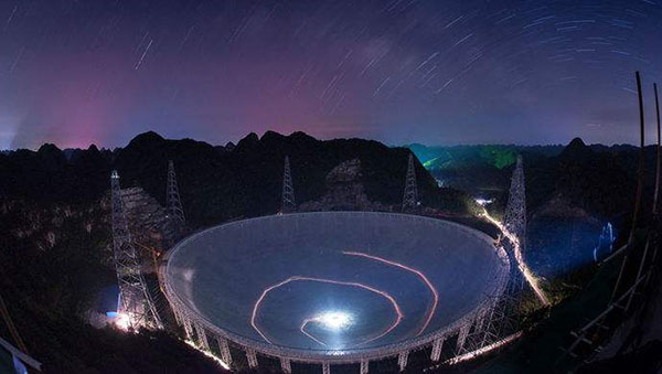 Localizado em uma baixa da terra kárstica naturalmente profunda e redonda na Província de Guizhou, no sudoeste da China, o FAST, ou Five-hundred-meter Aperture Spherical Radio Telescope (Rádiotelescópio Esférico de Abertura de Quinhentos Metros), tem uma área de recepta??o equivalente a cerca de 30 campos de futebol.