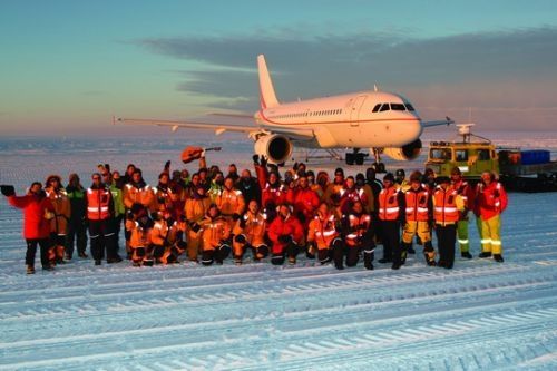 O avi?o, do Grupo HNA, com 22 passageiros a bordo, deverá agora voar ao longo do continente por 5 horas, antes de aterrizar próximo do polo sul.