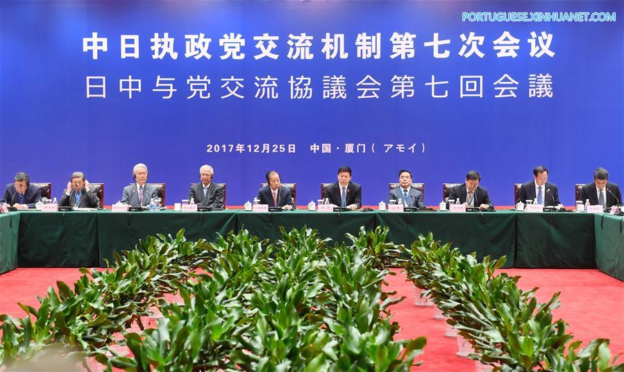 Fuzhou, 27 dez (Xinhua) -- Os funcionário de alto escal?o do Partido Comunista da China (PCCh) reuniram-se com a coliga??o do governo japonês formada pelo Partido Democrático Liberal (PDL) e seu parceiro Komeito. A reuni?o aconteceu nos dias 25 e 26 de dezembro na Província de Fujian, leste da China, a sétima reuni?o do mecanismo de intercambio entre partidos governantes sino-japoneses.