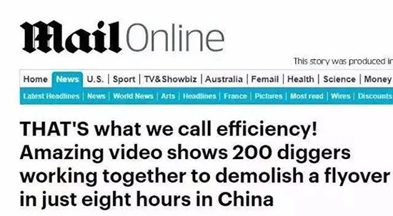O jornal britanico Daily Mail informou que “1500 operários chineses construíram um caminho-de-ferro para uma nova esta??o ferroviária em apenas NOVE HORAS. ” A reportagem imediatamente se tornou viral online e foi reproduzida mais de 8 mil vezes pelos internautas estrangeiros, apenas horas depois de ser publicada.