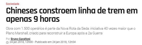 Esta n?o é a primeira vez que a imprensa internacional fica surpreendida com o ritmo de constru??o da China.