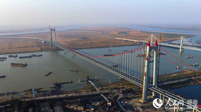 A ponte sobre o Lago Dongting é parte importante de uma se??o rodoviária em Hunan. A ponte bidirecional de seis pistas tem 2.390 metros de comprimento, com um v?o principal de 1.480 metros, tornando-se a ponte suspensa mais longa em viga mestra de a?o da China.
