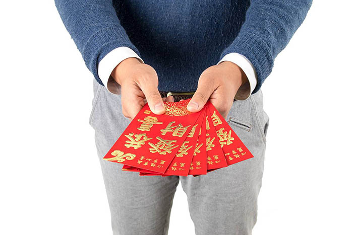 No primeiro dia, dar e receber envelopes vermelhos com dinheiro, conhecido como hongbao, é considerado uma prática que traz boa sorte, saúde e riqueza. O hongbao só é dado quando as crian?as e adolescentes de uma família expressarem seus bons votos para os mais velhos.