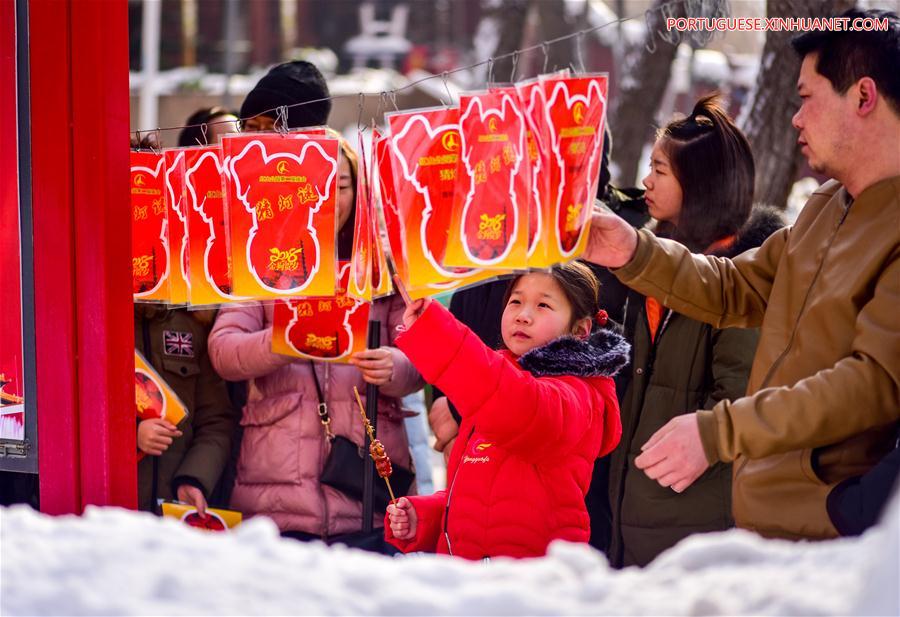 Pessoas resolvem enigmas em lanternas no Parque Hongshan em Urumqi, na Regi?o Aut?noma Uigur de Xinjiang, em 16 de fevereiro de 2018. As pessoas realizam várias atividades para celebrar o Ano Novo Lunar chinês em toda a China. (Jiang Wenyao)