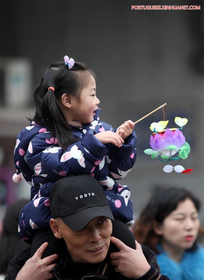 Uma crian?a se diverte no Templo do Confúcio em Nanjing, na província de Jiangsu, leste da China, em 16 de fevereiro de 2018. Muitos pais levaram seus filhos para o templo em celebra??o ao Ano Novo Lunar chinês. (Xinhua/Sun Zhongnan)