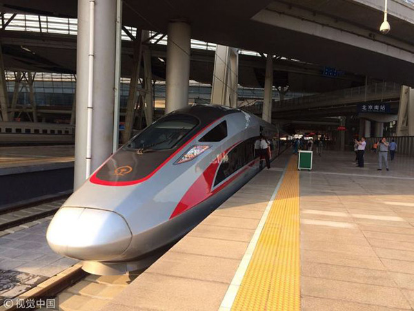 O trem-bala Fuxing, com uma velocidade máxima de 350 km/h, entrou em funcionamento no dia 21 de setembro de 2017.