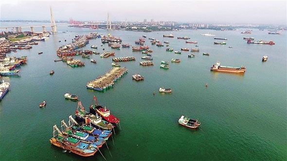 O porto central de Baimajing em Danzhou, na província de Hainan. A ilha de Hainan tem vantagens geológicas e recursos abundantes para o desenvolvimento da economia marítima. (Chen Yuancai/Diário de Hainan)