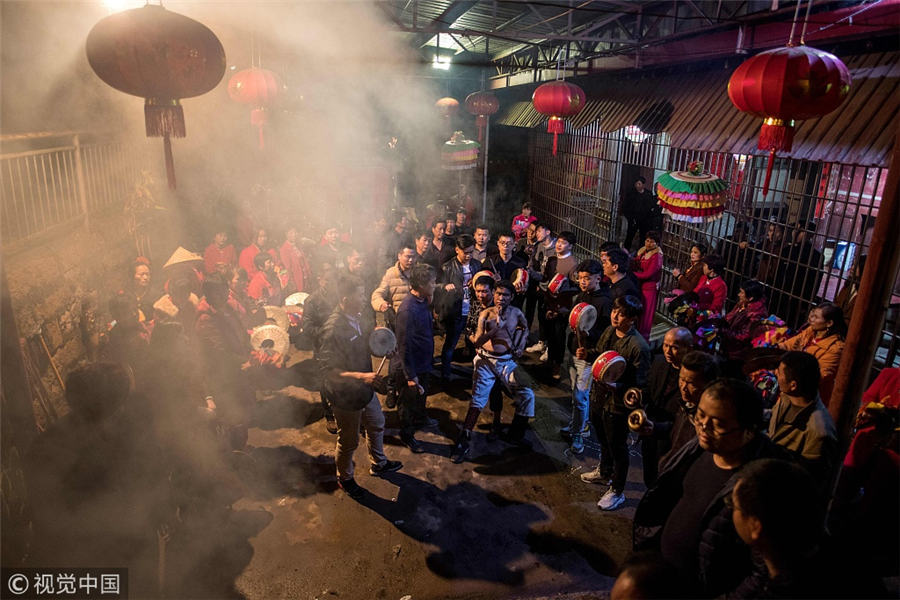 Como uma tradi??o única do Festival das Lanternas, o ritual do fogo-de-artifício é geralmente praticado por homens adultos com idades entre 20 e 50 anos, fazendo parte da vida dos locais da província de Fujian há mais de quatro séculos.