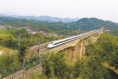 Um trem-bala sobre uma ponte, na província de Jiangxi.