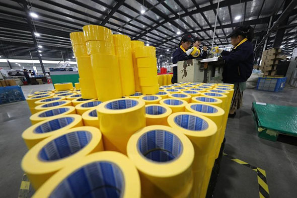 Funcionários de uma empresa em Fuzhou, na província de Jiangxi, preparam lotes de produtos para enviar à Europa e aos EUA, a 16 de janeiro de 2018. (Foto: Diáiro do Povo)