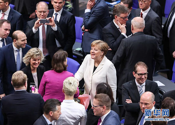 BEIJING, 15 de mar (Diário do Povo Online) - O presidente chinês Xi Jinping congratulou na quarta-feira Angela Merkel pela sua reelei??o para o quarto mandato como chanceler alem?.