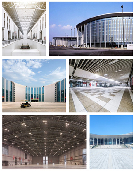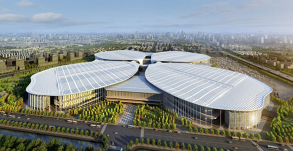 O projeto do Centro Nacional de Exposi??es e Conven??es tem uma área total de 1470 mil mestros quadrados, com sal?o de exposi??es, centro comercial e hotel de cinco estrelas. (Fonte: cecsh.com)