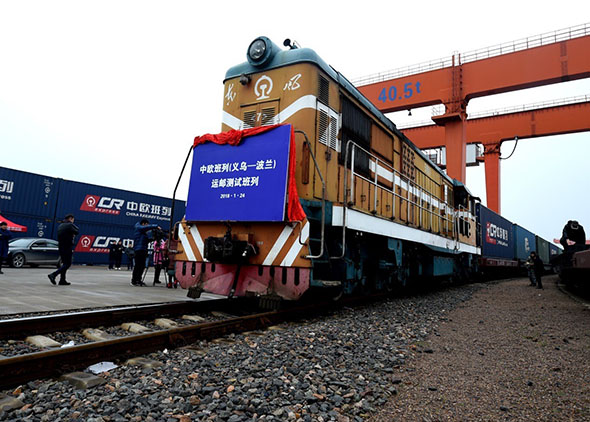 Trem China-Europa parte de Yiwu, na província de Zhejiang, com destino a Mataszewicze, na Pol?nia, a 24 de janeiro de 2018. (Foto: Diário do Povo)
