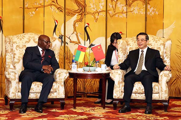 Zhou Qiang reúne-se com presidente do supremo tribunal de Guiné-Bissau. (Foto: court.gov.cn)