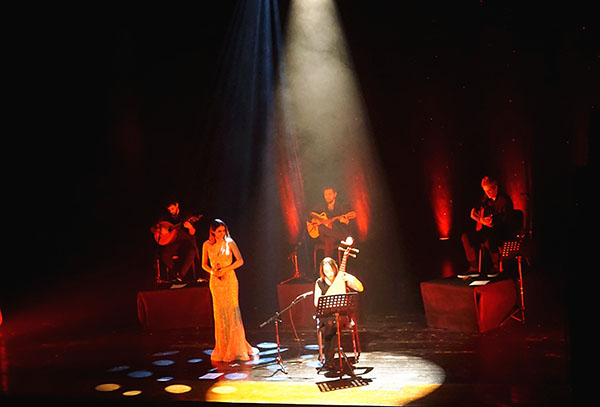 Ma Yuhui, conceituada artista chinesa que atuou na abertura dos Jogos Olímpicos de Beijing, em 2008, juntou-se em palco à fadista e ao resto da banda, ao comando da pipa, um instrumento de cordas tradicional da China. O tema escolhido para este momento foi o emotivo “Nos Teus Bra?os”, brindado por efusivos aplausos de uma plateia rendida.