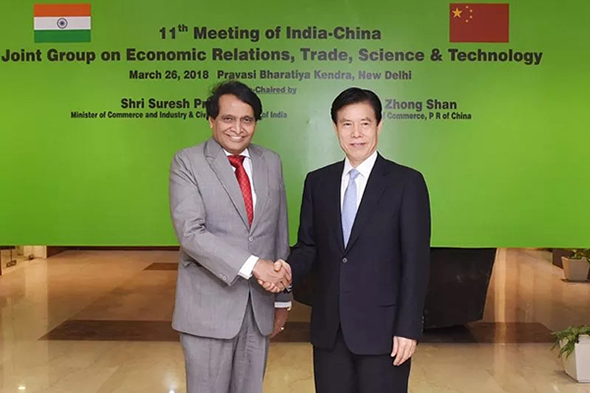 Na 11a reuni?o do Grupo Conjunto China-índia sobre as Rela??es Econ?micas, Comércio, Ciência e Tecnologia, o ministro do Comércio chinês Zhong Shan disse que o volume de comércio entre a China e a índia chegou a um nível recorde de US$ 84,4 bilh?es em 2017, 20,3% a mais em rela??o ao ano anterior.