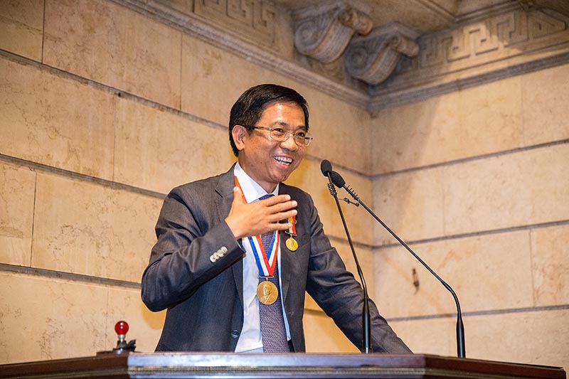 Bastos disse em seu discurso que Cai, por meio da empresa que preside, levou n?o só ao desenvolvimento do Brasil e à promo??o do emprego local, mas permitiu ampla participa??o em projetos de bem-estar social, especialmente o financiamento anual de projetos em comunidades mais pobres do Rio de Janeiro, caso do Complexo da Maré, onde a State Grid é mantenedora do projeto Orquestra Maré do Amanh?, que forma crian?as e adolescentes em música clássica.