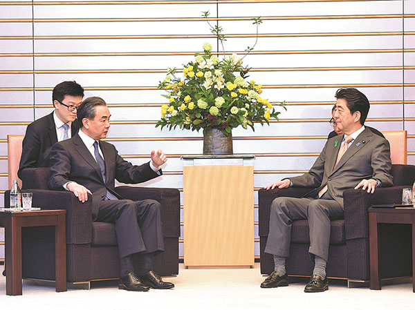 Durante um encontro com o primeiro-ministro japonês, Shinzo Abe, em Tóquio, o ministro das Rela??es Exteriores da China, Wang Yi, afirmou que ambos os países devem refor?ar a comunica??o e coordena??o, combater o protecionismo, proteger o sistema de livre comércio global, com a OMC como eixo, e construir uma economia mundial aberta.