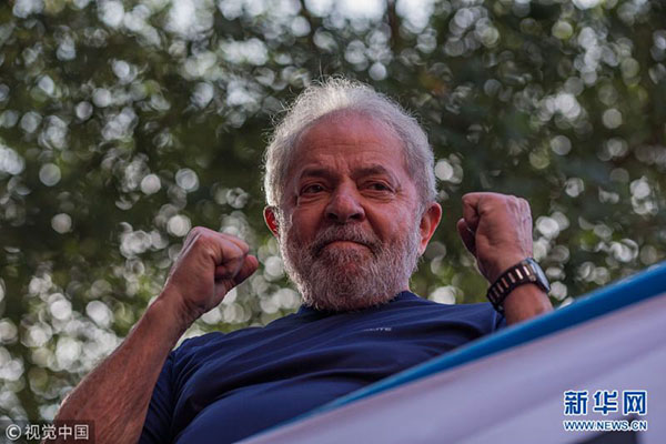 Rio de Janeiro, 17 abr (Xinhua) -- O ex-presidente brasileiro Luiz Inácio Lula da Silva (2003-2010), que está preso desde a semana passada, lidera todas as inten??es de voto para as elei??es presidenciais de outubro, segundo pesquisa divulgada no domingo.