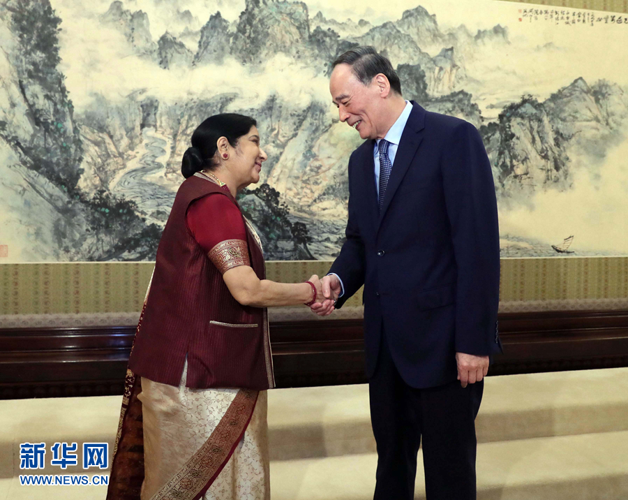 O vice-presidente da China, Wang Qishan, se reuniu ontem (23), em Beijing, com a chanceler da índia, Sushma Swaraj.