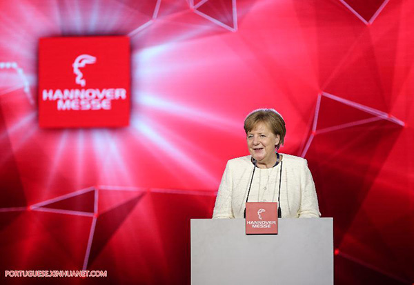 Hannover, Alemanha, 24 abr (Xinhua) -- A Feira de Hannover, maior feira industrial do mundo, foi inaugurada no domingo, com a chanceler alem?, Angela Merkel, ressaltando a importancia do livre comércio.