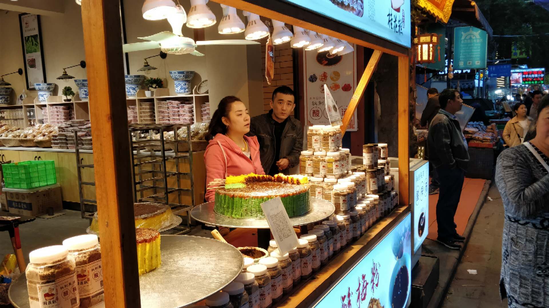 Pássaros chilreiam desenfreadamente em gaiolas suspensas sobre a rua; vendedores e vendedeiras gritam em plenos pulm?es, alguns dos quais com recurso a megafones; propaga-se o aroma penetrante da carne ovina, sobrepondo-se a tudo o resto— a língua chinesa tem inclusive uma palavra só para se referir ao odor característico, representada pelo carater 膻 (shan) —; chineses e estrangeiros de várias etnias, credos e proveniências contorcem-se para chegar a uma banca ou restaurante; motos tentam irromper por entre a azáfama, com recurso a buzinas ensurdecedoras; grupos de amigos chamam incessantemente uns pelos outros, “é aquele! é aquele restaurante!”, enquanto consultam nos smartphones as críticas deixadas na internet sobre os melhores sabores e promo??es; bocas de gás cospem fogo a todo o vapor sobre caldeir?es de toda a espécie e feitio; Códigos QR bamboleiam ao sabor de encontr?es e do vento, pendurados em cima dos sítios mais inusitados e vistosos para mostrar à clientela que se aceitam pagamentos de Alipay e Weixin (os aplicativos de pagamentos móveis mais em voga atualmente no país); uma amazónia de neons cintilantes e cartazes berrantes bradam por aten??o à boa maneira asiática; copos de vidro de iogurte caseiro, espetadas de lula assada, batatas fritas e n?o sei mais o quê rodopiam à minha volta ao som de exclama??es de deleite: “hao chi!” (delicioso); múltiplas lojas negoceiam saladas de fruta em bacias, em modo self-service, como se de refei??es completas se tratassem; TAU! TAU! TAU! Tran?as de massa s?o violentamente arremessadas sobre superfícies de madeira antes de serem esfiadas por habilidosos chefs locais, que apregoam a famosa “biangbiang mian” — sendo que ‘biang’ é representado pelo carater chinês mais complexo de todos, cujo único propósito é meramente uma representa??o fonética do ruído exasperante da massa a colidir com a tábua de culinária —; Cachos de malaguetas encarnadas oscilam em fachadas de lojas cuja especialidade é a venda deste condimento incendiário que infunde a alma dos pratos locais com o ardor característico; ouve-se o pulular incessante das aparatosas máquinas de sumo de mirtilo, outra especialidade local; toda esta cacofonia é complementada com comerciantes mais criativos que recorrem a truques e improvisos que possibilitem atrair mais freguesia ao seu estaminé.