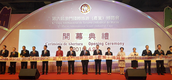 Macau, 28 abr (Xinhua) -- A 6a Expo Internacional de Turismo (Indústria) de Macau foi aberta nesta sexta-feira na Regi?o Administrativa Especial chinesa, exibindo diversos produtos turísticos, indústrias culturais e criativas, assim como gastronomia.
