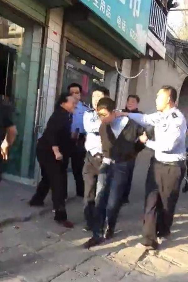O suspeito é detido após o ataque, perto de uma escola secundária na província de Shaanxi. [Foto: hsb.hsw.cn]