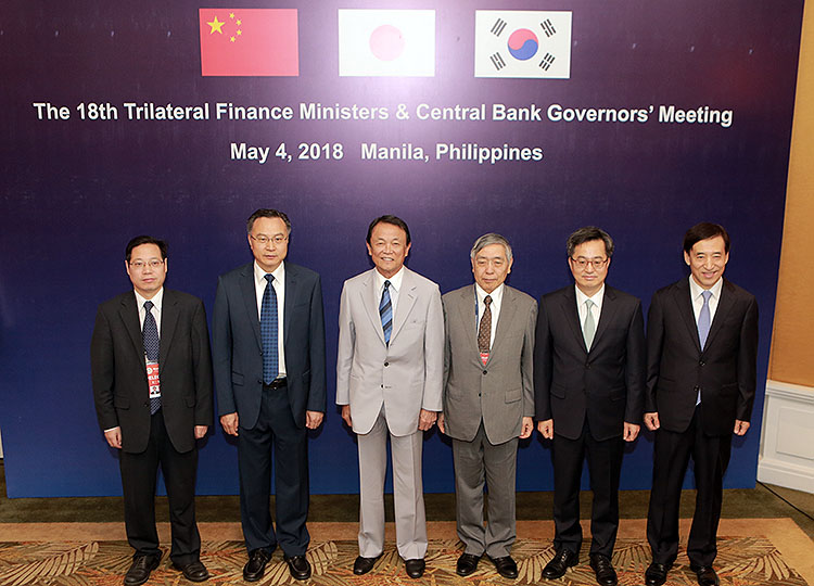 Os três países do Nordeste Asiático se reuniram à margem da 51a reuni?o anual do Banco Asiático de Desenvolvimento (BAD) na capital filipina para discutir os desenvolvimentos econ?micos atuais e o risco potencial nos mercados financeiros e nas condi??es econ?micas subjacentes.