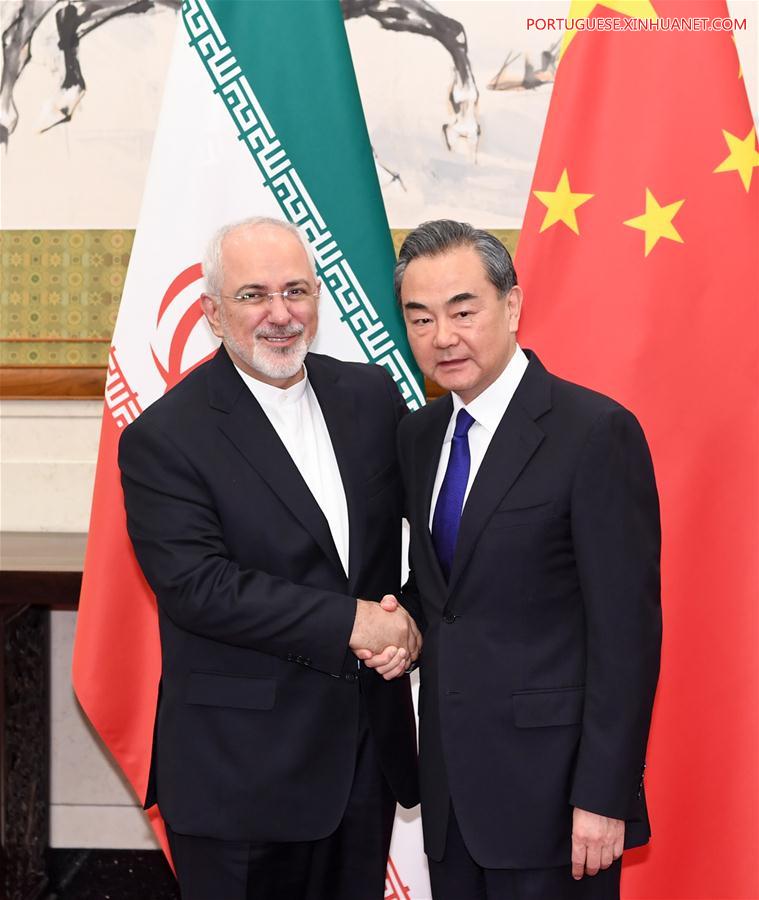 Beijing, 14 mai (Xinhua) -- O conselheiro de Estado e o ministro das Rela??es Exteriores chinês, Wang Yi, realizou conversas com o ministro das Rela??es Exteriores iraniano, Mohammad Javad Zarif, em Beijing, no domingo.
