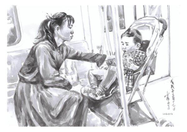 De entre os vários momentos gravados ao sabor do seu lápis, Jin destaca duas memórias: quando alguns passageiros ofereceram o seu lugar sentado a uma idosa, que retribuiu com uma vênia; e um grupo de trabalhadores da constru??o civil que, após um dia inteiro de trabalho, envergando os seus uniformes poeirentos, preferiram sentar-se no ch?o para n?o sujar os assentos.