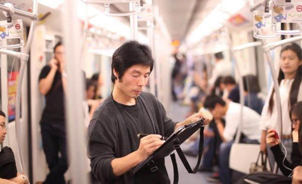 Para estes desenhos, Jin admite precisar apenas de um lápis e de uma folha de papel, algo que n?o ocupa muito espa?o. No entanto, por vezes, o metr? fica demasiado lotado, dificultando a sua tarefa. “N?o gosto de desperdi?ar tempo, por isso uso o tempo que passo no metro para fazer alguma coisa com significado. Além disso no metro temos uma ‘sociedade concentrada’. Quero usar a minha capacidade para desenhar esbo?os rápidos para gravar estes momentos”.