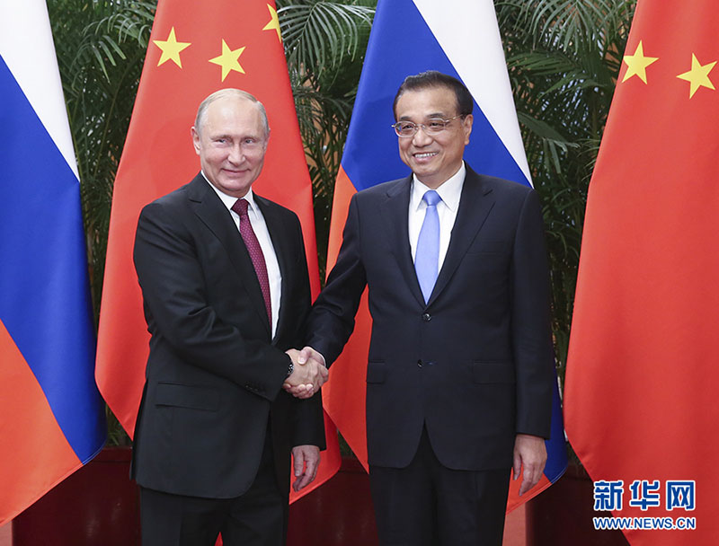 O primeiro-ministro chinês, Li Keqiang, encontrou-se ontem (8) em Beijing com o presidente russo, Vladimir Putin, que está na China em visita oficial e para participar do Cúpula de Qingdao da Organiza??o para Coopera??o de Shanghai (OCS).